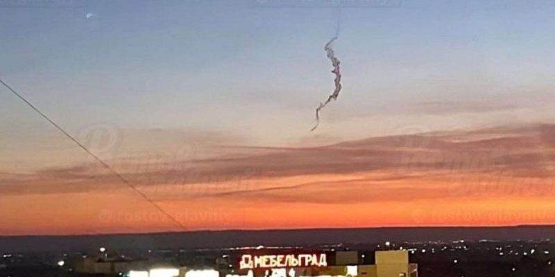 Місцеві жителі повідомляють, що бачили у небі чорний слід та чули “хлопки”. Спочатку росіяни вважали, що над містом нібито могла працювати ППО.